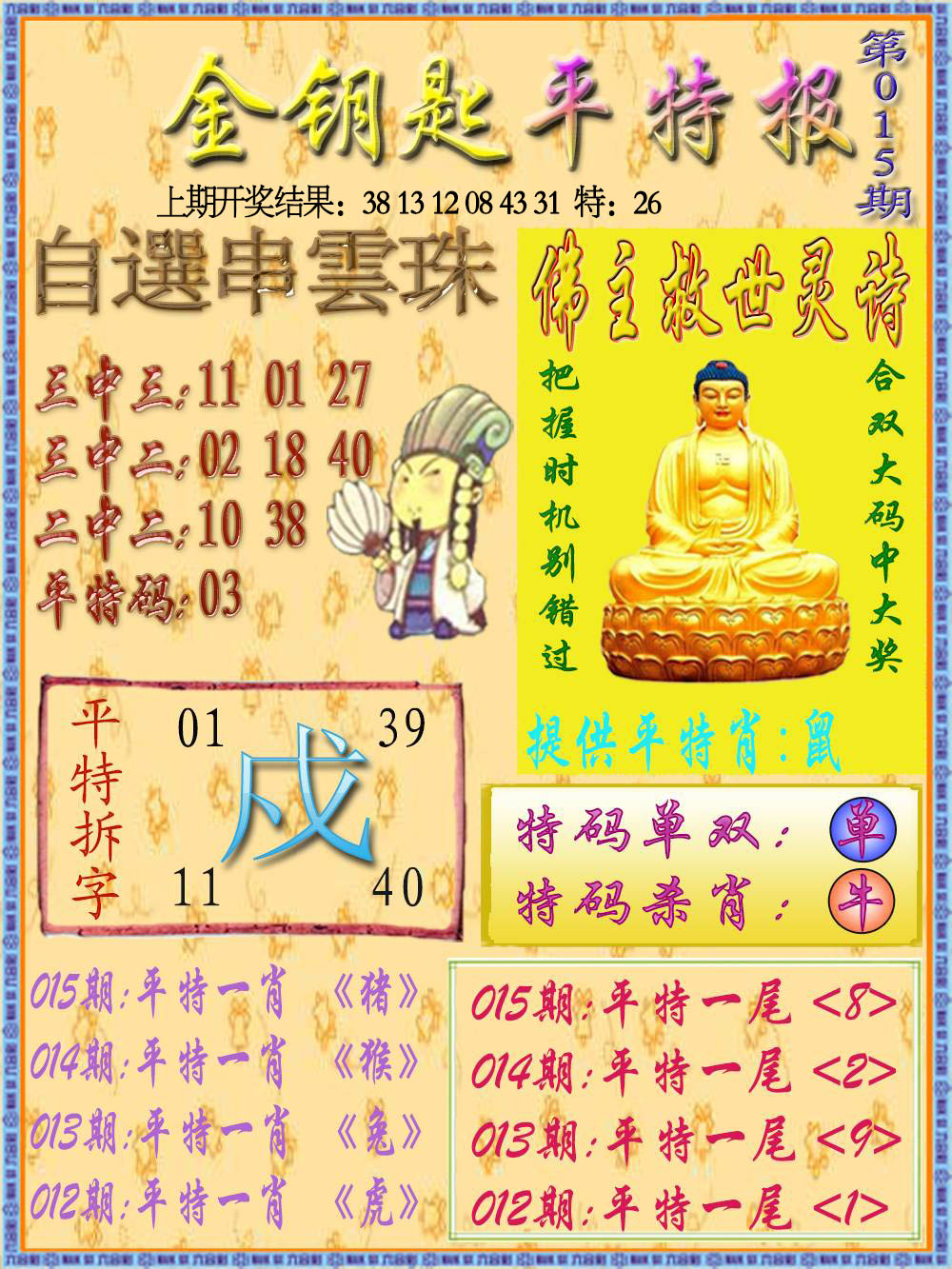 343期: 黄金一波 【绿波】 开 38龙 准
